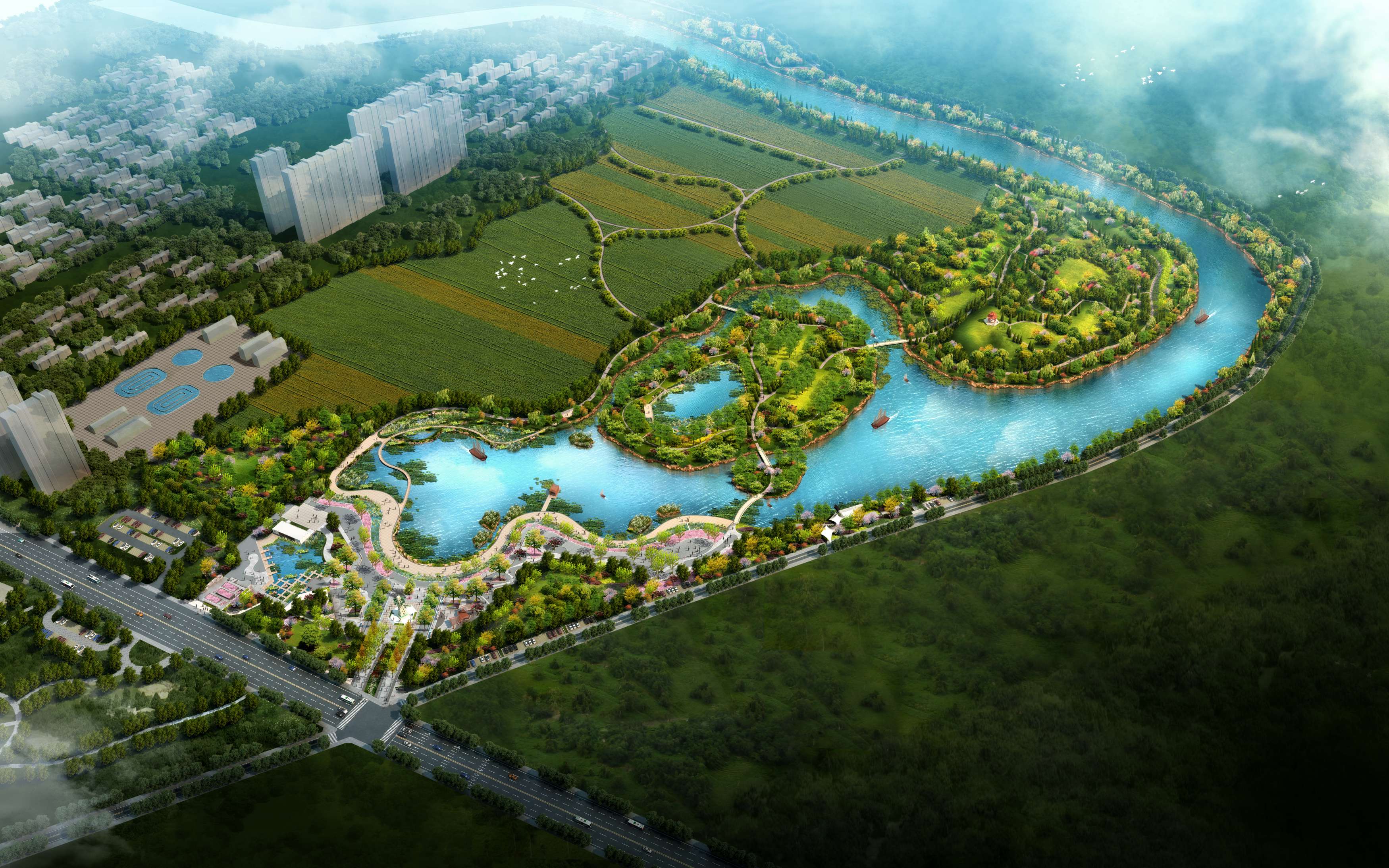 工程位于駐馬店市千年古縣、素有江北水城美譽的汝南縣,占地面積1438.19hm2,治理河道9條,總長度64.24km,是融合水利工程、生態工程、景觀工程為一體的綜合性工程,總投資25億元,在城區形成“一軸、兩翼、三環、十園”水系景觀,突出古城、名寺、水生態的城市定位,實現全城水系連通,生態治理、景觀打造,按照一河一景、一段一文、傳承歷史文脈的要求,分段打造濱水景觀,形成“水在城中、城在園中、人在景中”移步換景、美不勝收的濱水休閑空間。