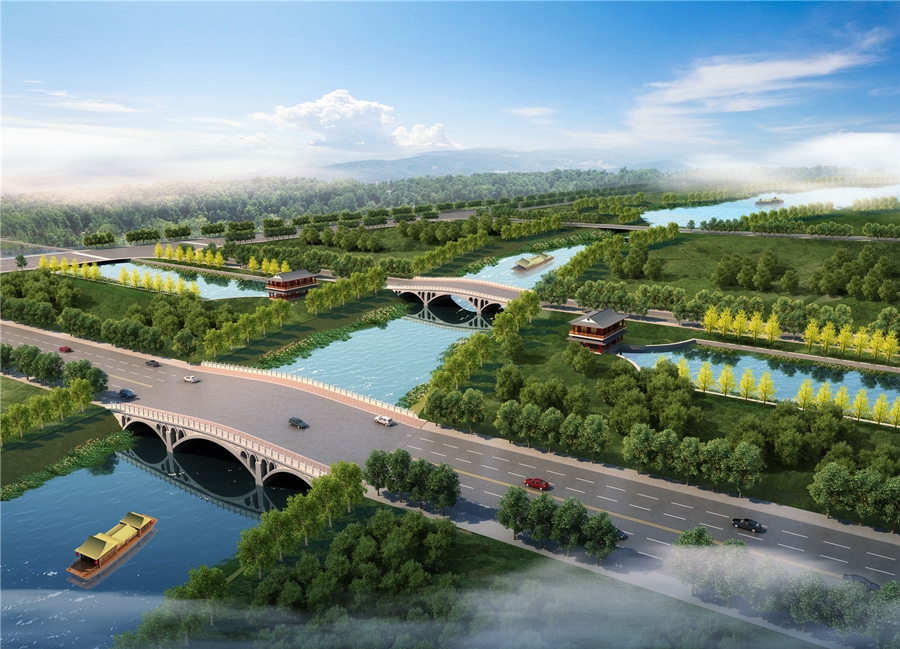 鄭東新區十八里云溪項目位于鄭東新區科學谷,該工程為河南大運河古汴河鄭東新區段,并自西向東橫穿鄭開雙創走廊,兩者有機融合,在沿線形成“一廊、一鎮、五園”空間結構布局。治理范圍西起賈魯河京港澳高速,東至萬三公路橋,總長12.43km。工程主要布局為“1河、2水源、3閘、1堰、1湖、8島、1倒虹、1退水、6碼頭、1生態”。工程建成后,水域面積79.06萬㎡,總庫容152萬m³,具有排澇、連通輸水、調蓄、灌溉、通航、生態景觀、旅游、傳承文化等功能,以實現聯系千年水脈,重塑運河文明,再現“古水流香,汴水秋生,煙柳花開、曲折蜿蜒”意境的設計效果,對于支撐國家大運河文化帶建設,同時帶動科學谷經濟發展等方面具有十分重要的作用。