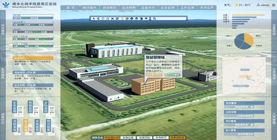惠南莊泵站、穿黃工程運維管理系統(實現基于BIM模型和實景模型的監測監控設備狀態信息實時查詢,實現工程的運維管理)